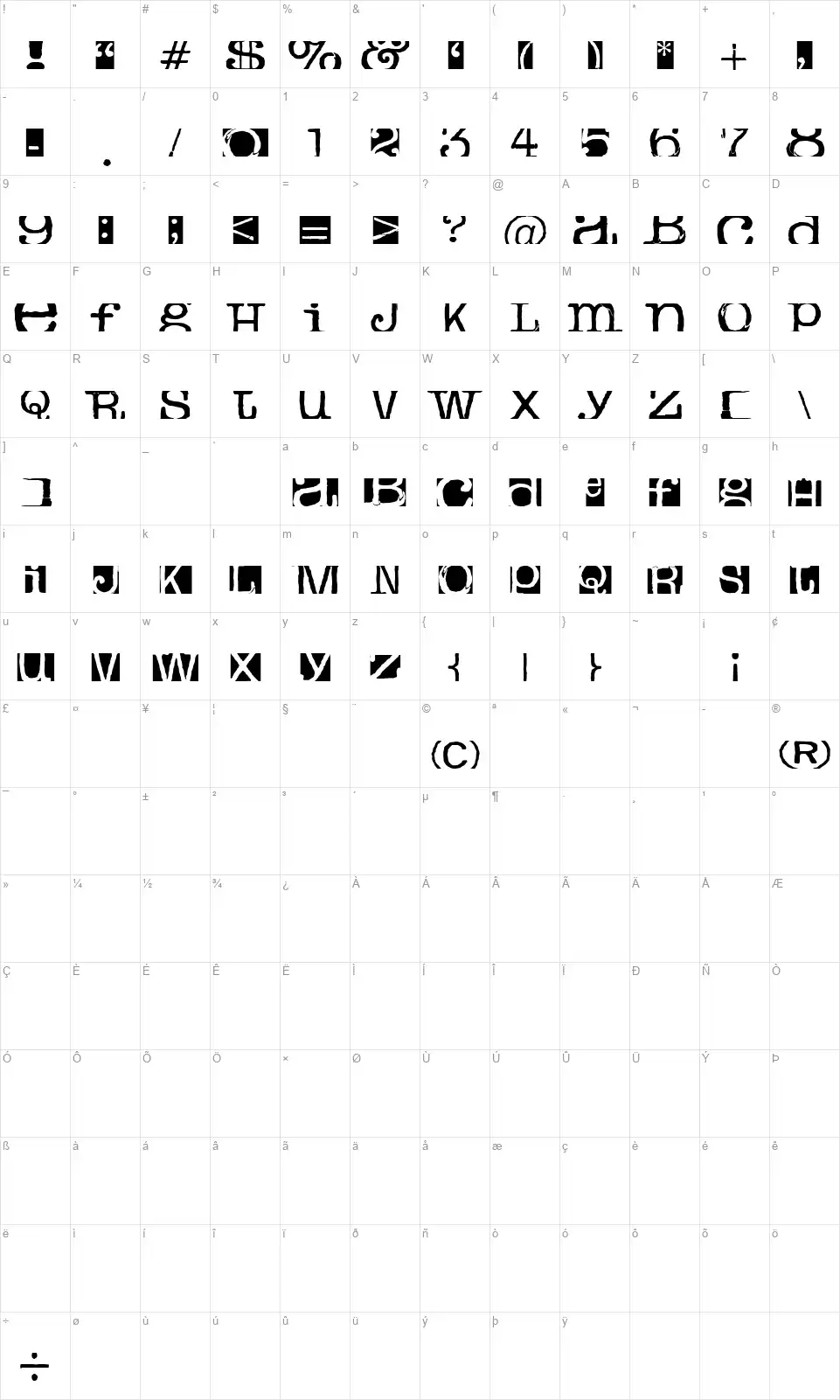 - Mapa de caracteres