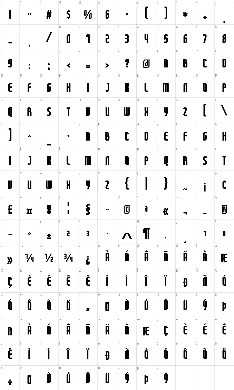 FT Betonfont character map