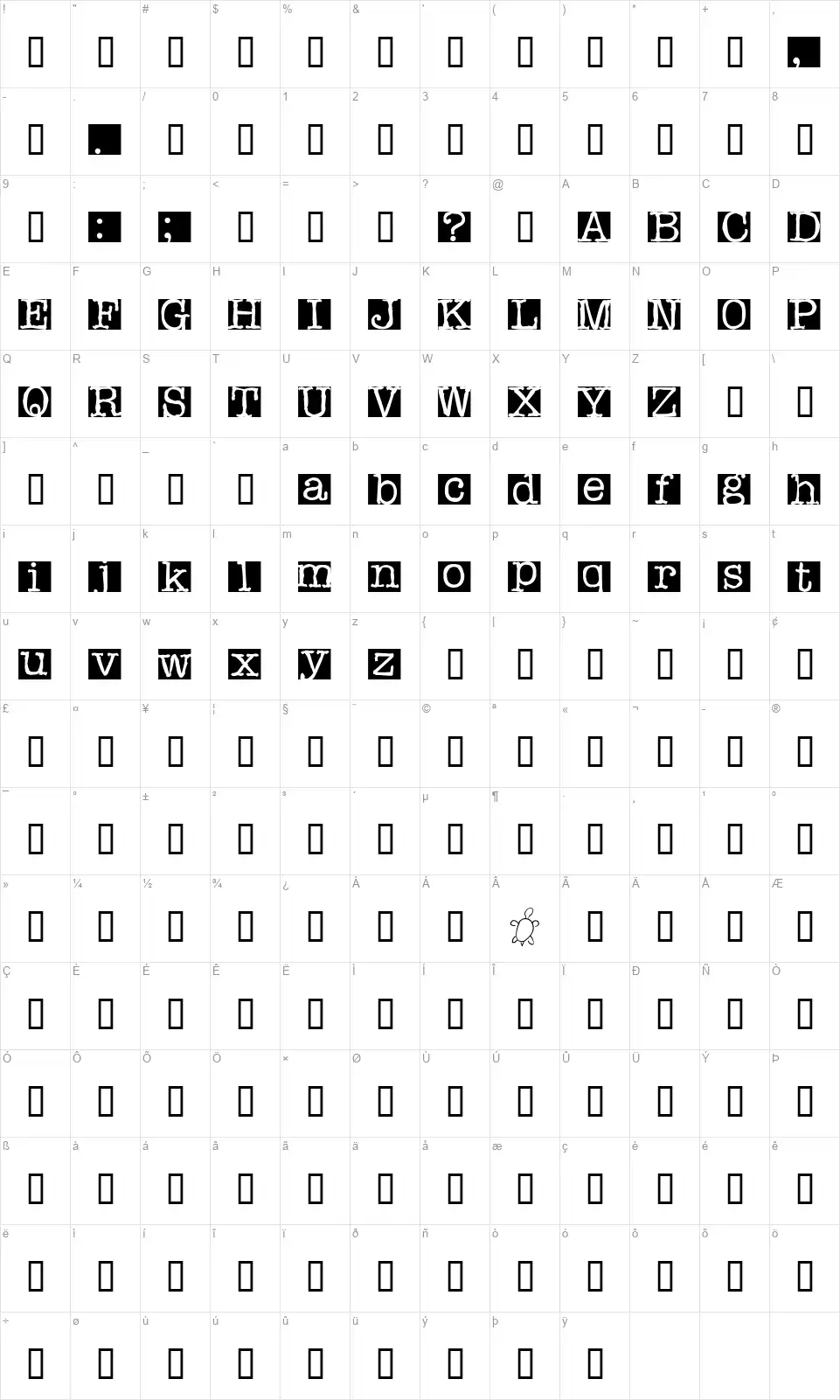 Rubberstampfont character map